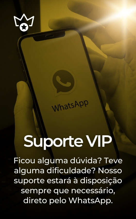 Você terá acesso ao Suporte VIP INDIVIDUAL via WhatsApp, onde poderá tirar suas dúvidas e receber orientação personalizada para aplicar as estratégias no seu negócio.